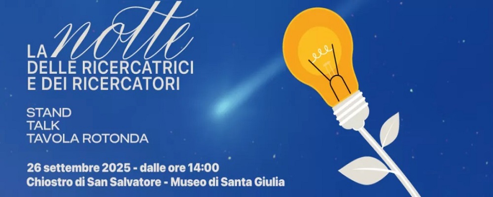 Venerdì 26 settembre 2025 torna la Notte delle Ricercatrici e dei Ricercatori: l’iniziativa volta a favorire l’incontro tra la ricerca, le scuole e la cittadinanza.L’evento è promosso e organizzato dall’Università degli Studi di Brescia, Università Cattolica del Sacro Cuore, Accademia di Belle Arti di Brescia SantaGiulia, Conservatorio “L. Marenzio” di Brescia e Fondazione Brescia Musei.